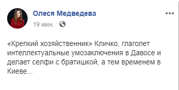 "Виталий Кличко в Давосе принял участие в дискуссии "Разумное финансирование умных городов". Тот, кто зарегистрировал Витальку на эту панель, - троль!"