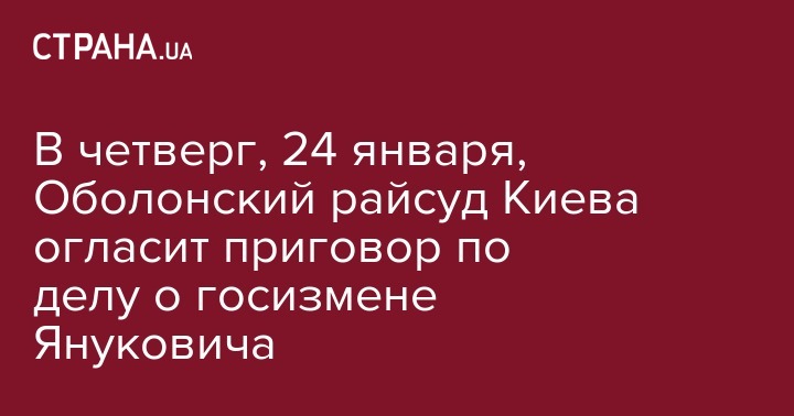 В четверг, 24 января, Оболонский районный суд Киева начнет оглашение приговора в деле о госизмене экс-президента Украины Виктора Януковича. Об этом сообщает пресс-служба суда
