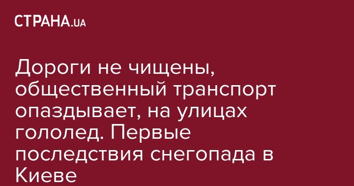 Дороги не чищены, общественный транспорт опаздывает, на улицах гололед. Первые последствия снегопада в Киеве