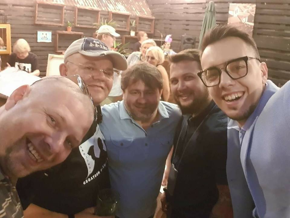 Андрей Дзиндзя (в центре) на фото в окружении "порохоботов" Павла Дальнобоя и Мирослава Олешко Фото: facebook.com/dzindzia