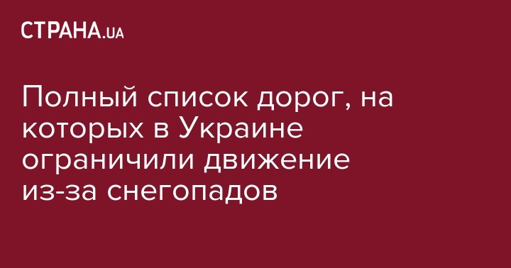 Укравтодор опубликовал обновленную информацию о ситуации на дорогах государственного значения и закрытых для передвижения автотранспорта дорогах.