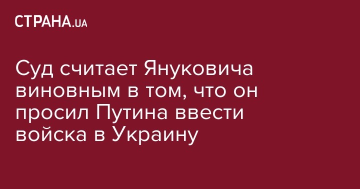 Судья Оболонского райсуда Владислав Девятко огласил, что Виктор Янукович 1 марта 2014 года направил президенту РФ Владимиру Путину обращение с просьбой ввести российские вооруженные силы на территорию Украины "для содействия нарушению суверенитета Украины, а также для легитимации  российской агрессии".