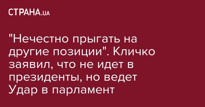"Я буду участвовать в парламентских выборах и, с высокой вероятностью, политическая партия "Удар" будет принимать участие в парламентских выборах для того, чтобы отстаивать интересы и города Киева, и каждого городка и каждой деревни в Украине", – сказал Кличко агентству "Интерфакс-Украина".