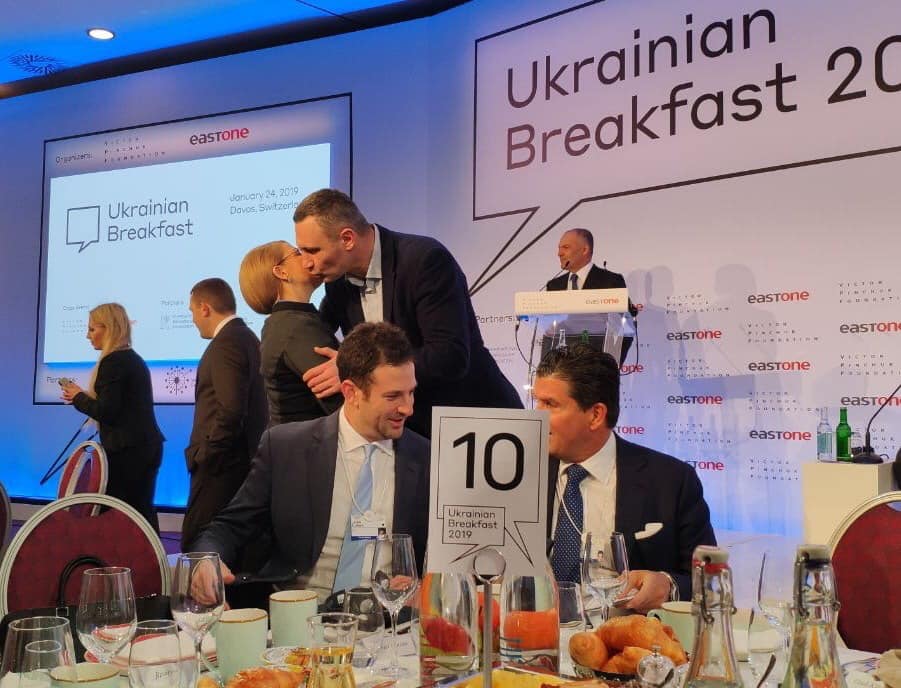 Утро 24 января началось для украинцев в Давосе с традиционного "украинского завтрака", организованного Фондом Пинчука. На нем выступили кандидаты в президенты Юлия Тимошенко и Анатолий Гриценко. После них выступил Петр Порошенко. Речи напоминали предвыборные дебаты, только без прямых дискуссий между участниками. На выступление отводилось по 5 минут, и еще 10, чтобы ответить на вопросы.