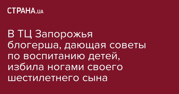 В Запорожье разразился скандал после того, как известная местная блогерша, дающая в соцсети советы по счастливому материнству и правильному воспитанию детей избила своего шестилетнего сына на глазах у других детей и сотрудников игровой комнаты. Инцидент произошел 19 января в торгово-развлекательном центре Запорожья и попал на камеры слежения. Об этом сообщает ТСН.
