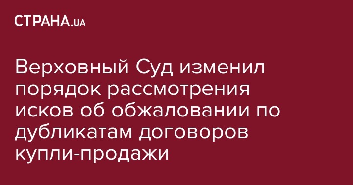 Верховный Суд изменил порядок рассмотрения исков об обжаловании по дубликатам договоров купли-продажи