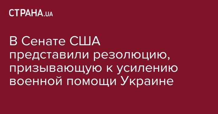 В Сенате США представили резолюцию, которая призывает к усилению оборонной помощи Украине и поддерживает отмену строительства газопровода "Северный поток -2". Об этом сообщает посольство Украины в США на своей странице  в Facebook.