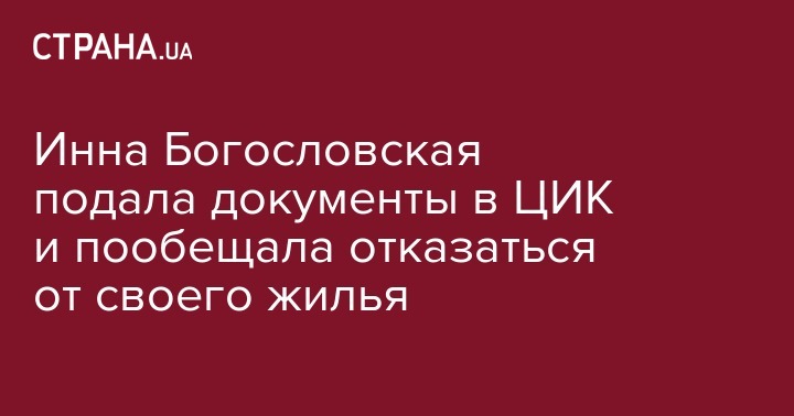 Инна Богословская подала документы в ЦИК и пообещала отказаться от своего жилья