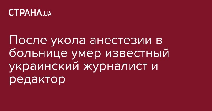 После укола анестезии в больнице умер известный украинский журналист и редактор