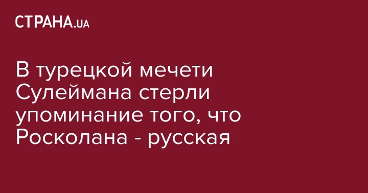 В Турции около стамбульской мечети Сулеймана из пояснительной таблички убрали фразу о русском происхождении жены султана Сулеймана I Роксоланы. Об этом сообщает посольство Украины в Турции на своей странице в Facebook.