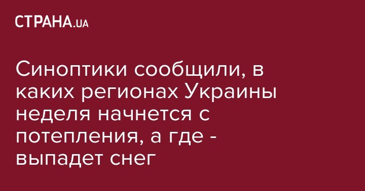 В Украине рабочая неделя начнется с небольшого потепления, но местами выпадет снег. Об этом сообщает Укргидрометцентр.