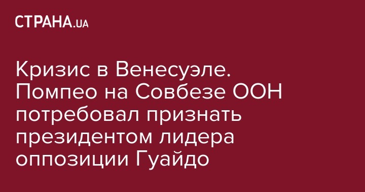 Кризис в Венесуэле. Помпео на Совбезе ООН потребовал признать президентом лидера оппозиции Гуайдо