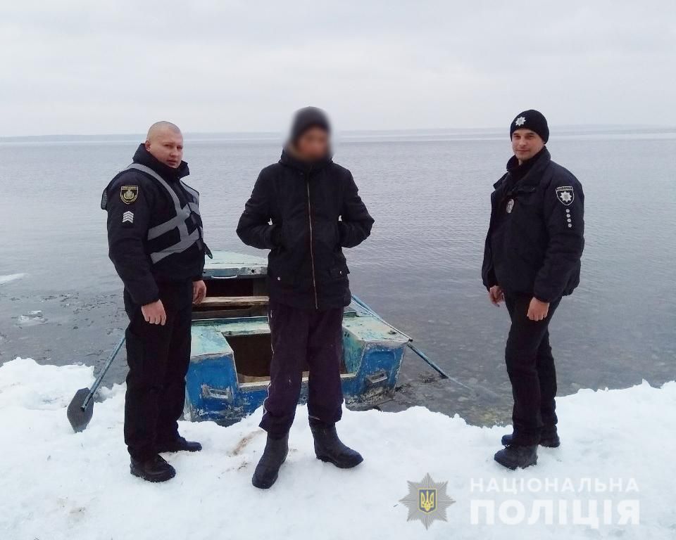 Инцидент произошел, когда двое подростков играли на льду у берега Днепра. Вдруг лед пошел трещинами и одного парня унесло течением вниз по реке. Его друг сразу позвонил в полицию. По словам полицейских, патрульные в течение 5 минут нашли лодку у местного жителя и быстро поплыли за парнем. Течение уже успело отнести льдину на 2 километра от берега, но полицейские догнали ее и спасли парня.