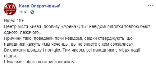 В центре Киева, у "Арена Сити", толпа избивала лежачего с криками: "Мы чеченцы"