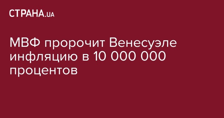В Венесуэле уровень инфляции в этом году продолжит расти и по его итогам года может достичь 10 миллионов процентов. Об этом предупредили в МВФ, сообщает ТАСС.