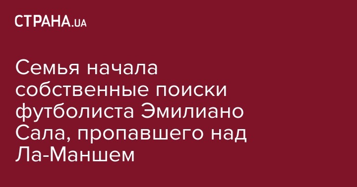 Семья пропавшего над Ла-Маншем аргентинского футболиста Эмилиано Сала начала собственную операцию по поиску исчезнувшего самолета. Об этом передает британская газета Daily Mail.