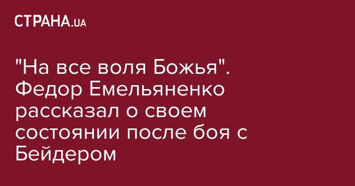 "На все воля Божья". Федор Емельяненко рассказал о своем состоянии после боя с Бейдером