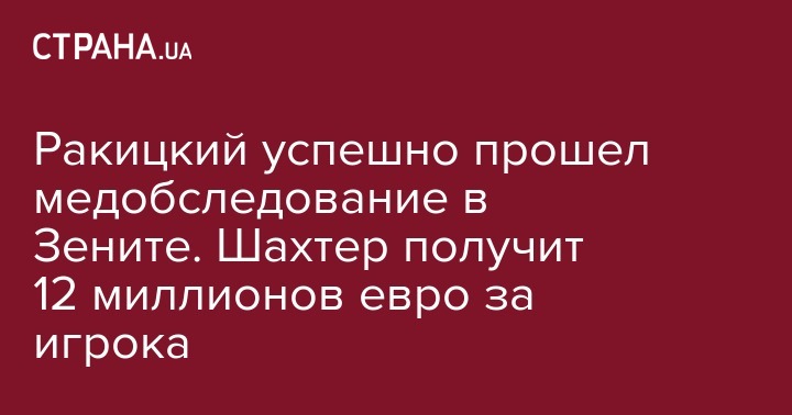 Бывший защитник донецкого Шахтера, Ярослав Ракицкий, который покинул расположение команды на сборах в Турции и отправился в Доху (в Катаре Зенит проводит первый сбор - Прим.Ред.), успешно прошел медицинское обследование в питерском клубе.