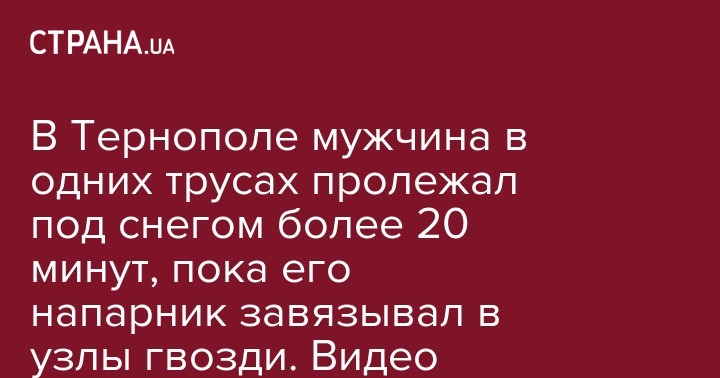 В Тернополе мужчина в одних трусах пролежал под снегом более 20 минут, пока его напарник завязывал в узлы гвозди. Видео