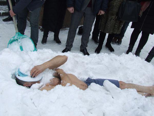 В Тернополе мужчина ради установления рекорда более 20 минут лежал снегом, из одежды на нем были только трусы. Рекордсменом стал 55-летний Василий Шевчук из Хоросткова, об этом пишет УНИАН.