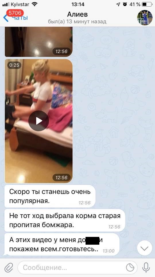 По ее словам, во время этой сцены дети, находившиеся в соседней комнате, проснулись и плакали. Женщина опубликовала одно из видео, которыми ее шантажирует супруг. "Послушайте, как ведет себя отец детей и педагог, который учит мальчиков в спортивной школе. Вы доверяете психопату своих детей", - заключила Алиева.