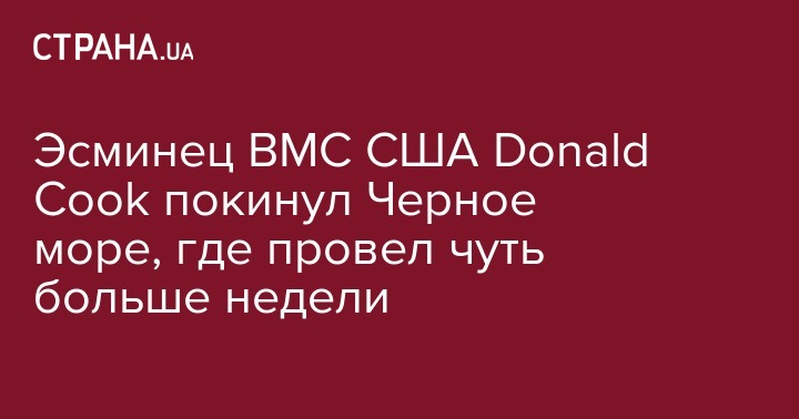 Эсминец военно-морских сил США Donald Cook покинул Черное море и направляется в Средиземное море через пролив Босфор. Об этом говорится в распространенном в понедельник заявлении пресс-службы 6-го флота ВМС США.
