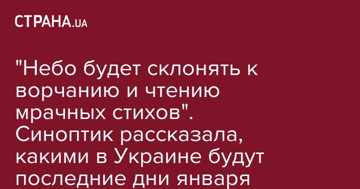 Конец января в Украине выдастся теплым и туманным, морозы и снегопады в ближайшие дни отступят. Об этом пишет на своей странице в Facebook синоптик Наталья Диденко.