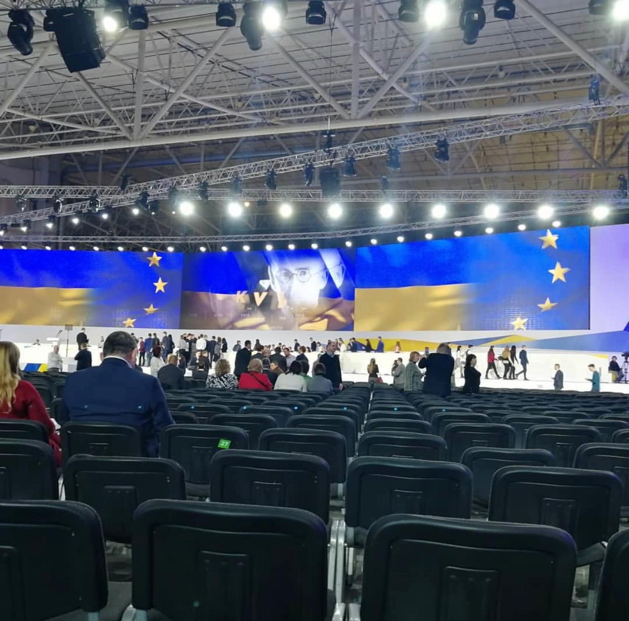13:55  На форуме должен будет выступить спикер парламента Андрей Парубий. Для него заготовлен плакат.