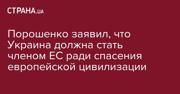 Порошенко заявил, что Украина должна стать членом ЕС ради спасения европейской цивилизации