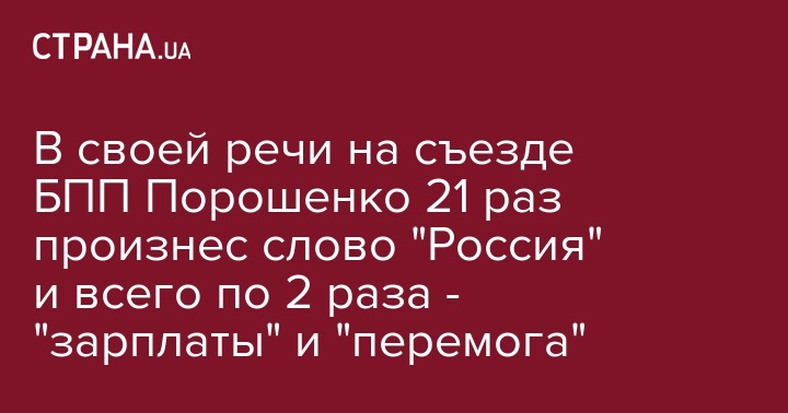 В своей речи на съезде БПП Порошенко 21 раз произнес слово "Россия" и всего по 2 раза - "зарплаты" и "перемога"