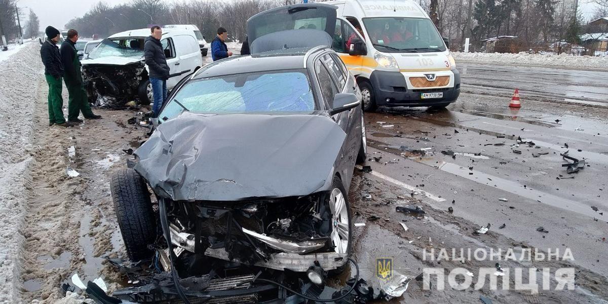 Так, 29 января на окраине Житомира произошло дорожно-транспортное происшествие с участием автомобилей BMW, "Газель" и Renault Kangoo.