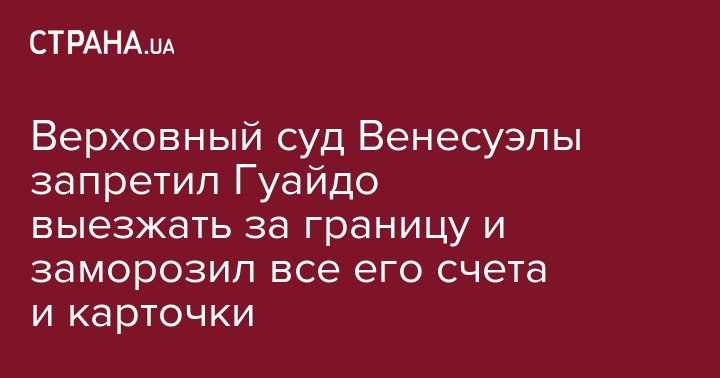 Верховный суд Венесуэлы запретил лидеру оппозиции Хуану Гуайдо покидать страну и заблокировал доступ к его банковским счетам. Об этом сообщается в официальном Twitter.