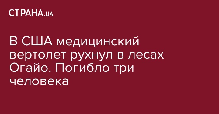 Вчера, 29 января, в США произошла очередная катастрофа с медицинским вертолетом. Здесь, в лесу штата Огайо рухнул вертолет службы скорой медпомощи. На борту находились три человека, к сожалению, никто из них не выжил. Об этом передает дорожная полиция Огайо.
