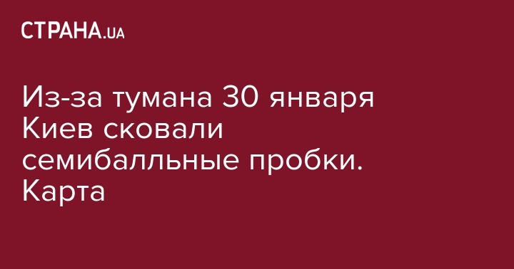 В среду, 30 января, в Киеве на дорогах образовались семибалльные пробки, причиной которых стал сильный туман. Об этом свидетельствуют данные сервиса Google Maps.