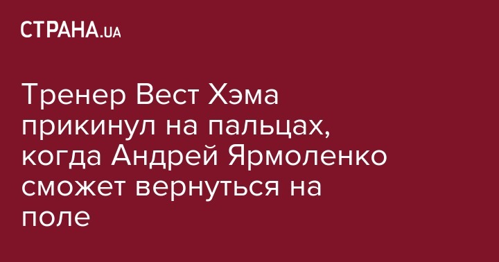 Тренер Вест Хэма прикинул на пальцах, когда Андрей Ярмоленко сможет вернуться на поле