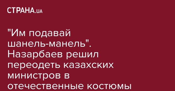 Президент Казахстана Нурсултан Назарбаев заявил, что казахские министры должны носить одежду местного производства. Об этом сообщает NUR.KZ.