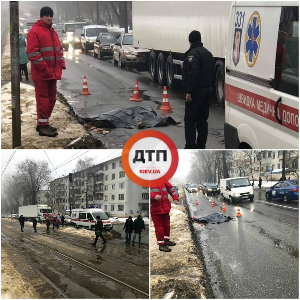 В Киеве фура раздавила пожилую женщину и скрылась с места ДТП. Фото и видео