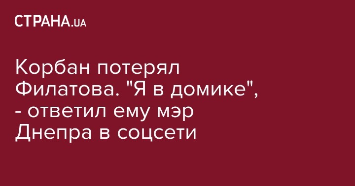 Корбан потерял Филатова. "Я в домике", - ответил ему мэр Днепра в соцсети