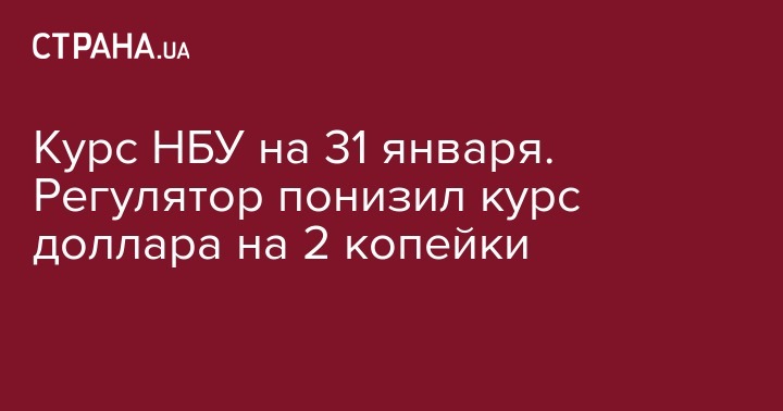 Нацбанк на 31 января 2019 года установил официальный курс валюты США на уровне 27,75 грн/доллар, что на 2 копейки ниже по сравнению с предыдущим банковским днем. Об этом свидетельствуют данные на сайте регулятора.