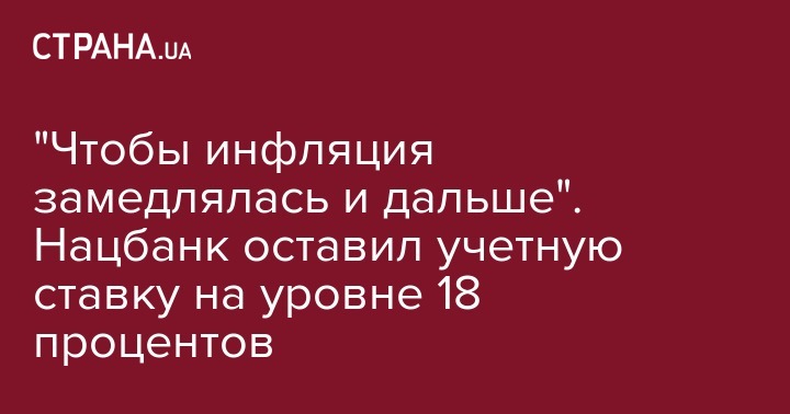 Национальный банк Украины принял решение сохранить учетную ставку на уровне 18%. Об этом сообщает пресс-служба НБУ.