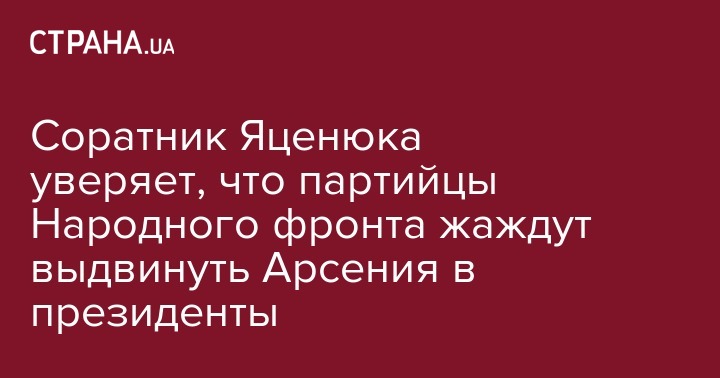 Соратник Яценюка уверяет, что партийцы Народного фронта жаждут выдвинуть Арсения в президенты