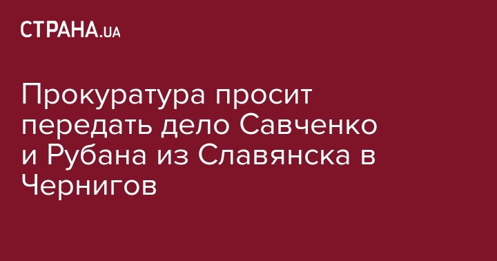 Прокуратура подала ходатайство в Верховный суд Украины о передаче дела депутата Верховной рады Надежды Савченко и бывшего руководителя Центра освобождения пленных "Офицерский корпус" Владимира Рубана из Славянска в Чернигов, сообщил адвокат Рубана Валентин Рыбин.