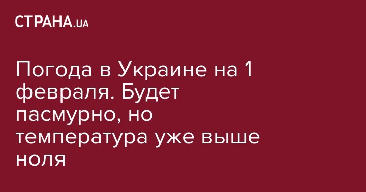 В пятницу, 1 февраля, погода в Украине будет облачной. Дожди с мокрым снегом ожидаются только в Ужгороде. Незначительные осадки ожидаются также и на севере страны. Днем температура воздуха составит +1…+5°С, в Крыму до +8…+10°С. Об этом сообщает meteoprog.