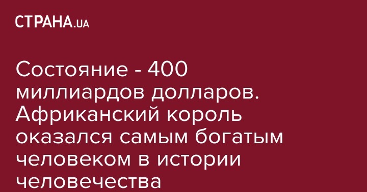 Состояние - 400 миллиардов долларов. Африканский король оказался самым богатым человеком в истории человечества