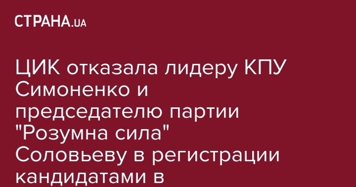 В субботу, 2 февраля, Центральная избирательная комиссия отказала лидеру Коммунистической партии Украины Петру Симоненко и лидеру партии "Розумна сила" Александру Соловьеву в регистрации кандидатами в президенты. Об этом сообщает "Интерфакс".