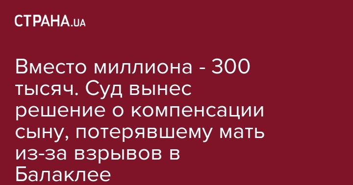 Вместо миллиона - 300 тысяч. Суд вынес решение о компенсации сыну, потерявшему мать из-за взрывов в Балаклее