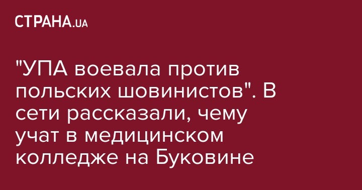 "УПА воевала против польских шовинистов". В сети рассказали, чему учат в медицинском колледже на Буковине