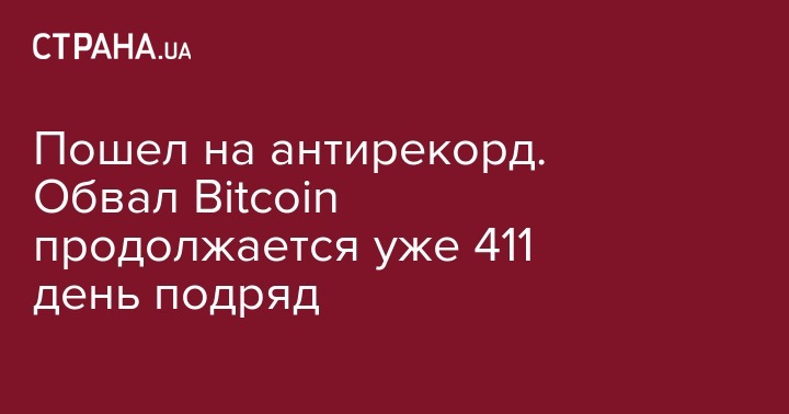 По состоянию на 2 февраля 2019 года обвал криптовалюты продолжался уже 411 день подряд. Сейчас курс составляет 3412 долларов.