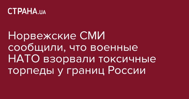 Военные Североатлантического Альянса взорвали токсичные торпеды прямо в Северном море вблизи территориальных вод РФ. Об этом сообщает норвежское издание Dagbladet. Инцидент произошел 1 февраля.