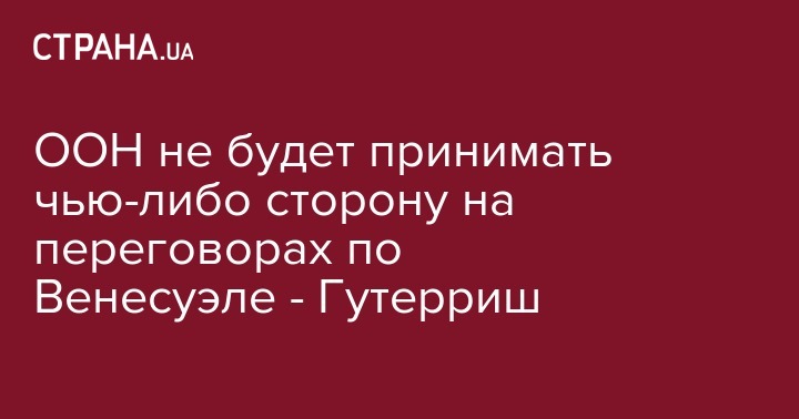 Генеральный секретарь ООН Антониу Гутерриш отказывается от приглашения для участия в переговорах по урегулированию ситуации в Венесуэле, которые 7 февраля пройдут в столице Уругвая Монтевидео, так как Организация объединенных наций не занимает чью-либо сторону. Об этом пишет Интерфакс со ссылкой на заявление Гутерриша журналистам в Нью-Йорке.